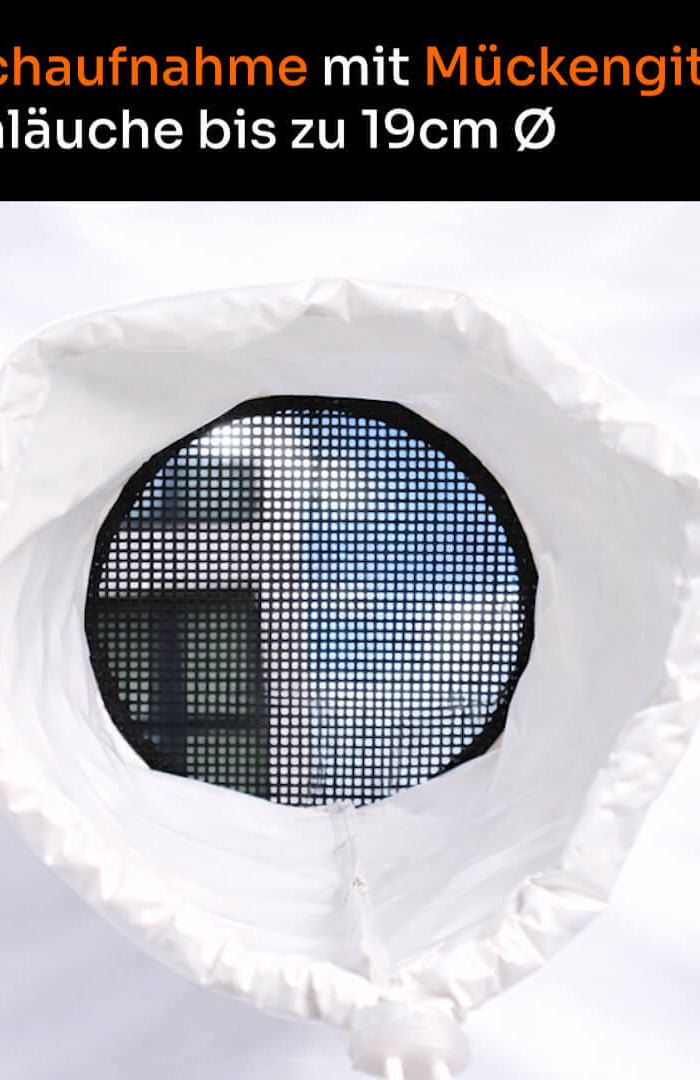 - Alle Schlauchgrößen kompatibel – selbst bis Ø 19 cm