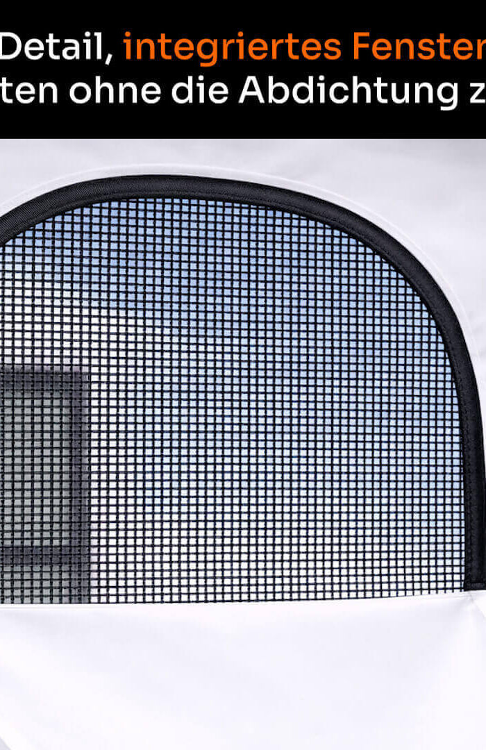 - Lüftungsfenster: Tiersicheres, gummiertes Insektengitter, fest vernäht