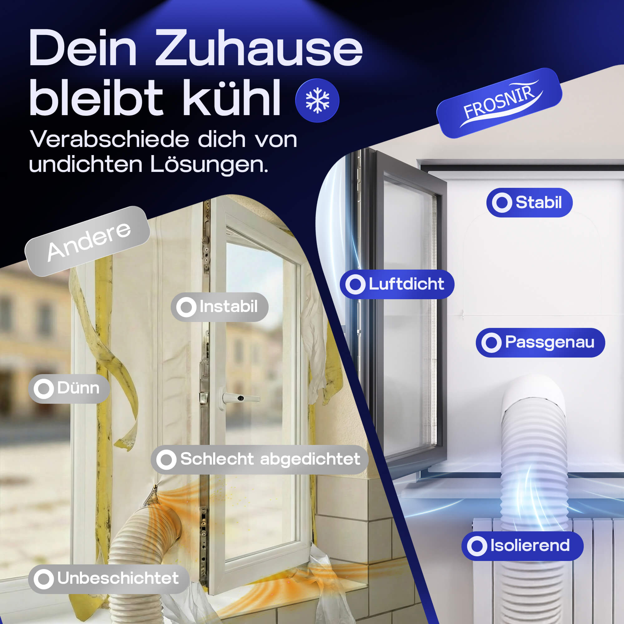 Als Premium-Fensterabdichtung setzt Frosnir gezielt auf exakte Passform, langlebige Materialien und eine vollständig dichte Ausführung, damit du das maximale Kühlpotenzial aus deiner mobilen Klimaanlage herausholst. Diese Voraussetzungen lassen sich bei